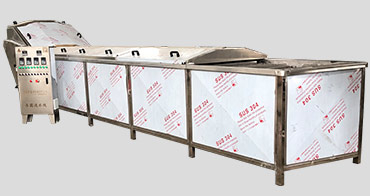 A葉菜類:收菜--分揀輸送--氣泡清洗(粗洗)--氣泡清洗殺菌機--噴淋清洗(凈洗)--風干瀝水--包裝輸送。